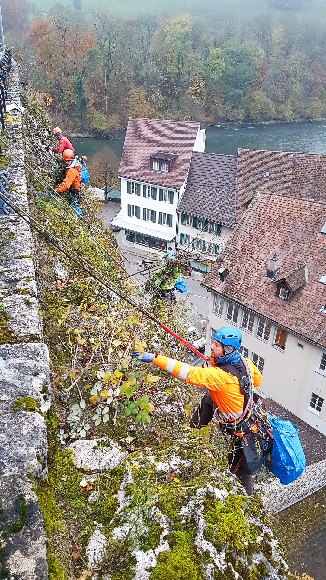 An schwer zugänglichen Stellen kann unerwünschter Grünwuchs kann entfernt werden. Bäume können stückweise gefällt werden, wenn zu wenig Platz da ist um diese herkömmlich zu fällen.